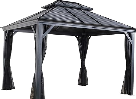 Amazon Com Sojag 12 X 14 Mykonos Double Roof Hardtop Gazebo Outdoor Sun Shelter 12 X 14 Grey Garden Outdoor